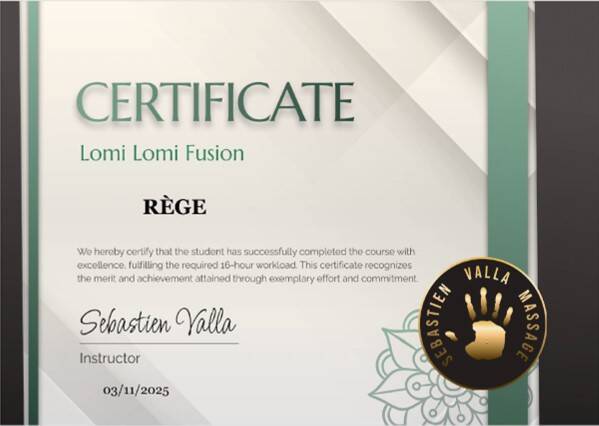 Concernant mes formations en Massage bien-être et soins énergétiques, je suis diplômée des prestations suivantes :
